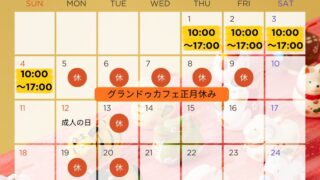 営業日カレンダー 2026年 2月カレンダー 2月4日から15日までは営業時間を変更します!平日は12:00~17:00、18:00~22:00 夜パフェや限定メニュ... 2026.01.30 営業日カレンダー